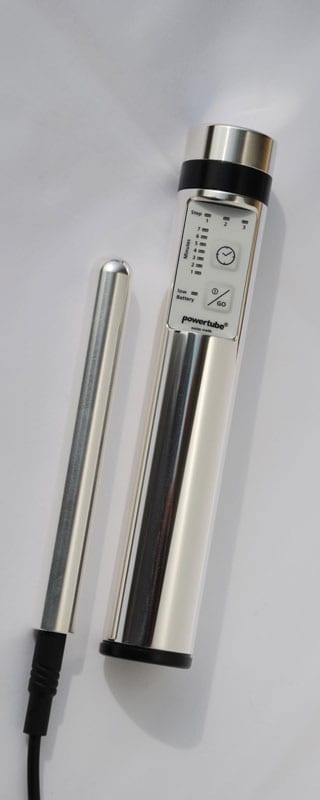 PowerTube® is a registered and certified medical device for pain relief. The PowerTube® device works on the skin and cycles through three stages that use high frequencies to provide relief. Alternating current and frequencies corresponding to the water molecule make PowerTube® a device different to other devices on the market.